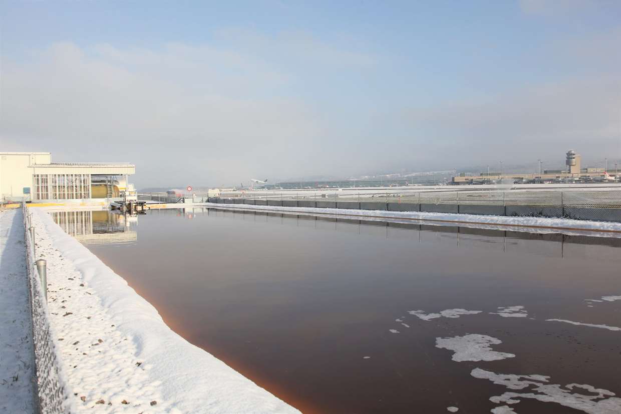 The various types of waste water that arise at Zurich Airport are treated in different ways. All domestic waste water, from toilets or restaurant kitchens for example, is channelled into the local sewage treatment plant at Kloten-Opfikon where it is treated. The sewage plant, which is a joint venture between Flughafen Zürich AG and the municipalities of Kloten and Opfikon, is currently being renovated and extended (while operations continue uninterrupted). The contents of grease separators are sent to a biogas plant. Special waste water, from workshops or from aircraft toilets for example, requires pre-treatment on the airport premises before it can likewise be sent to the sewage plant.