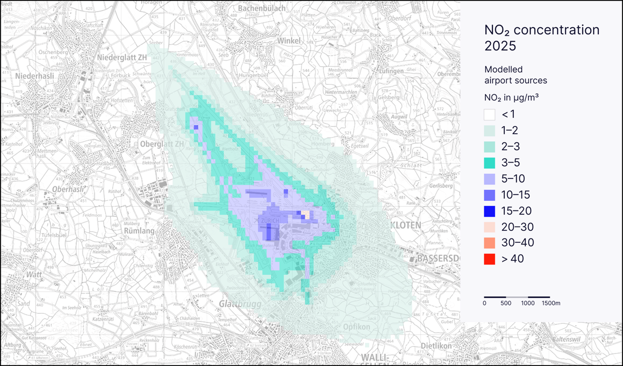 Zurich Airport’s contribution to nitrogen dioxide pollution in the region